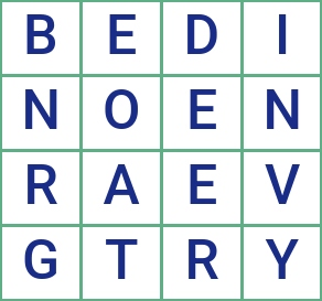 We were able to uncover a total of six answers for Puzzle No. 655 which had these letters: B E D I N O E N R A E V G T R Y.