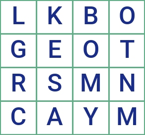 The six answers for Puzzle No. 741 of Word Salad which had these letters: L K B O G E O T R S M N C A Y M are included here.