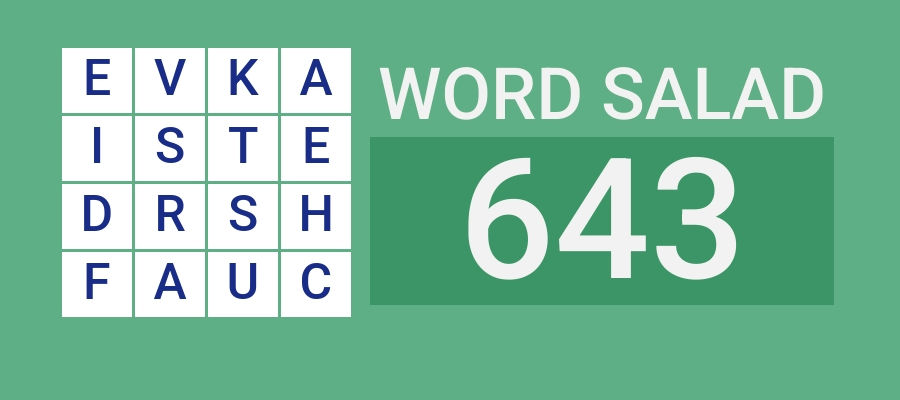 We were able to uncover a total of six answers for Puzzle No. 643 which had these letters: E V K A I S T E D R S H F A U C.