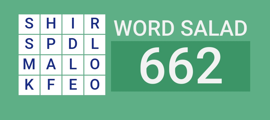 We were able to uncover a total of six answers for Puzzle No. 662 which had these letters: S H I R S P D L M A L O K F E O.