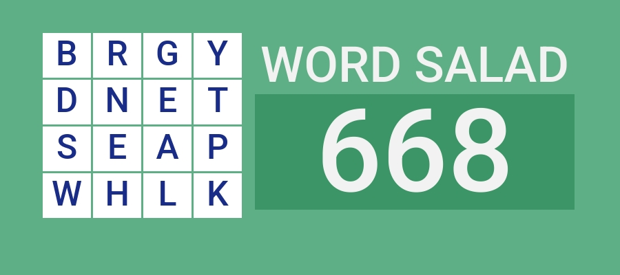 We were able to uncover a total of six answers for Puzzle No. 668 which had these letters: B R G Y D N E T S E A P W H L K.