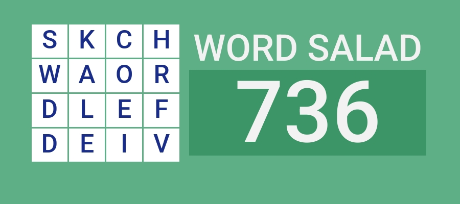 We were able to uncover a total of six answers for Puzzle No. 736 which had these letters: S K C H W A O R D L E F D E I V.