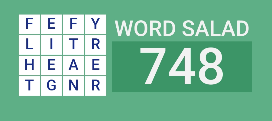 The five answers for Puzzle No. 748 of Word Salad which had these letters: F E F Y L I T R H E A E T G N R are included here.