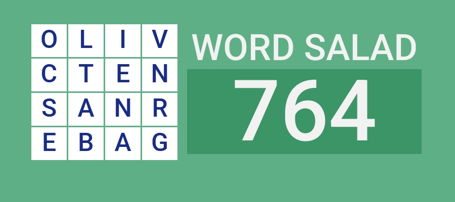 We were able to uncover a total of seven answers for Puzzle No. 764 which had these letters: O L I V C T E N S A N R E B A G.