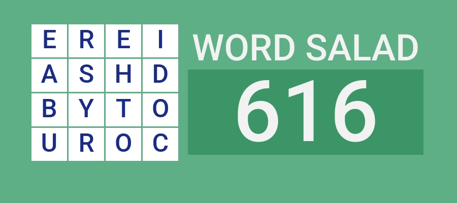 We were able to uncover a total of six answers for Puzzle No. 616 which had these letters: E R E I A S H D B Y T O U R O C.