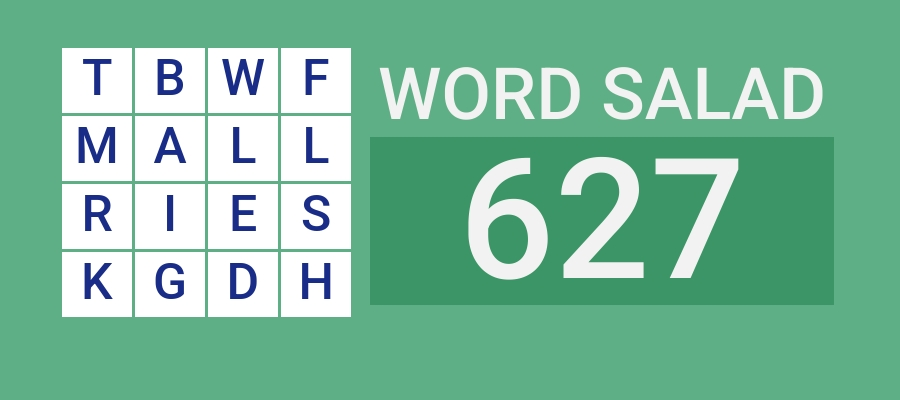 We were able to uncover a total of six answers for Puzzle No. 627 which had these letters: T B W F M A L L R I E S K G D H.
